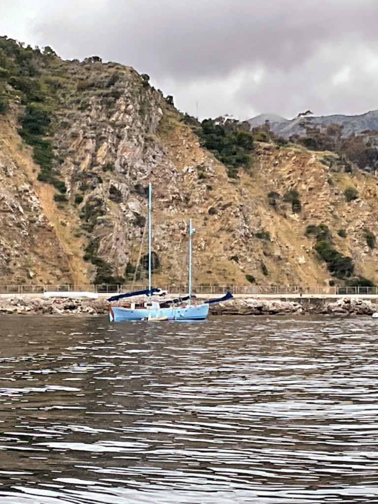Nas fotos abaixo, veleiro próximo de Seal Rock, a placa do Catalina Island Yacht Club de 1924 e o prédio de madeira sobre palafitas do mesmo clube (fotos Silvio Cioffi – V!VA)