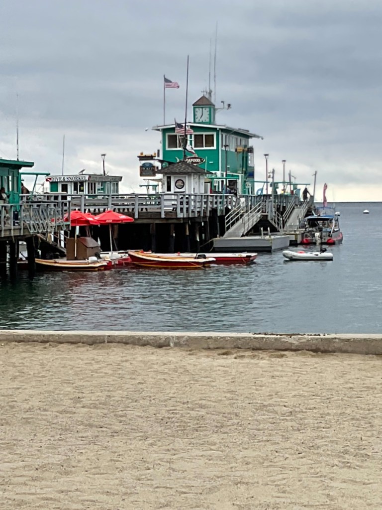 Logo na chegada a Avalon a bordo do Catalina Express (tel. local 310-5191212), em meio há centenas de veleiros, iates e embarcações de turismo e de pesca, o prédio art déco do Casino e o Green Pier se destacam.