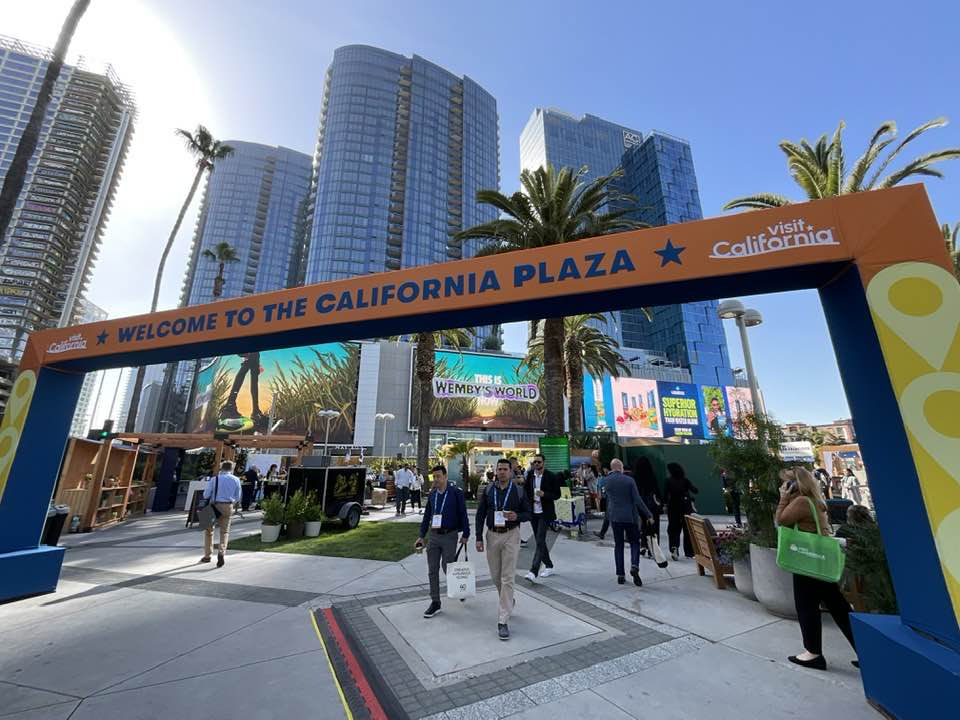 No alto da pág. e acima, cenas do espaço California Plaza e do IPW24, maior evento do turismo dos EUA, realizado no Los Angeles Convention Center (fotos Silvio Cioffi – V!VA)