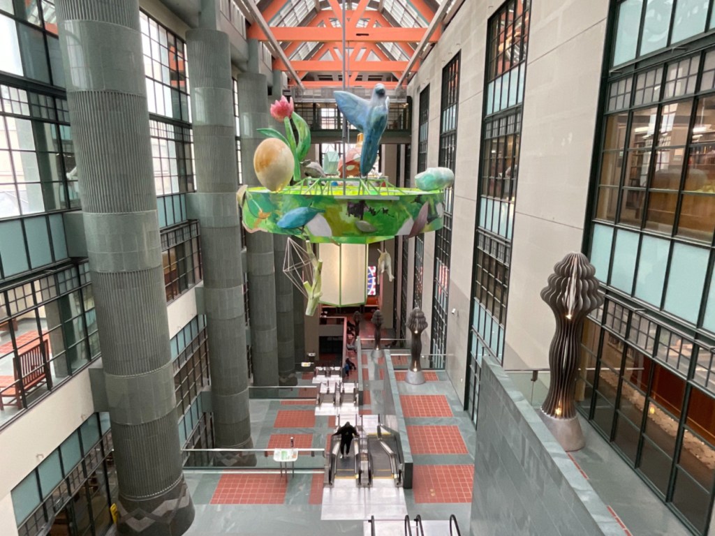 Detalhe do lustre com o globo terrestre e aspectos do hall da Los Angeles Public Library (LAPL), cujo acervo conta com seis milhões de volumes (fotos Silvio Cioffi – V!VA)