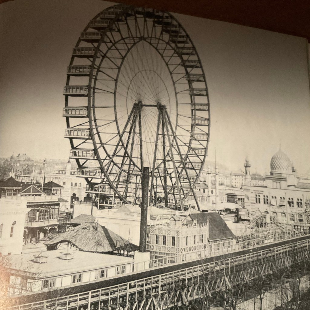 Entre as inovações apresentadas no evento, havia uma roda-gigante com capacidade para 60 pessoas a uma altura equivalente a um prédio de 26 andares, foi especialmente “inventada” para a ocasião (uma réplica moderna, mas nas mesmas proporções, pode ser vista hoje no Navy Pier de Chicago).