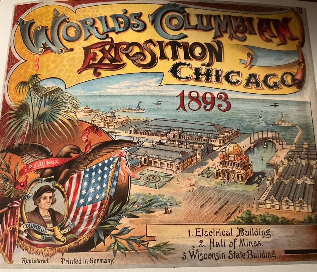 Batizado de World’s Columbian Exposition em alusão aos 400 anos da descoberta da América por Cristóvão Colombo, em 1492, o evento atrasou um ano, sendo aberto em 1893 e antecipando tecnologias então avançadas que seriam de aplicação geral anos depois.