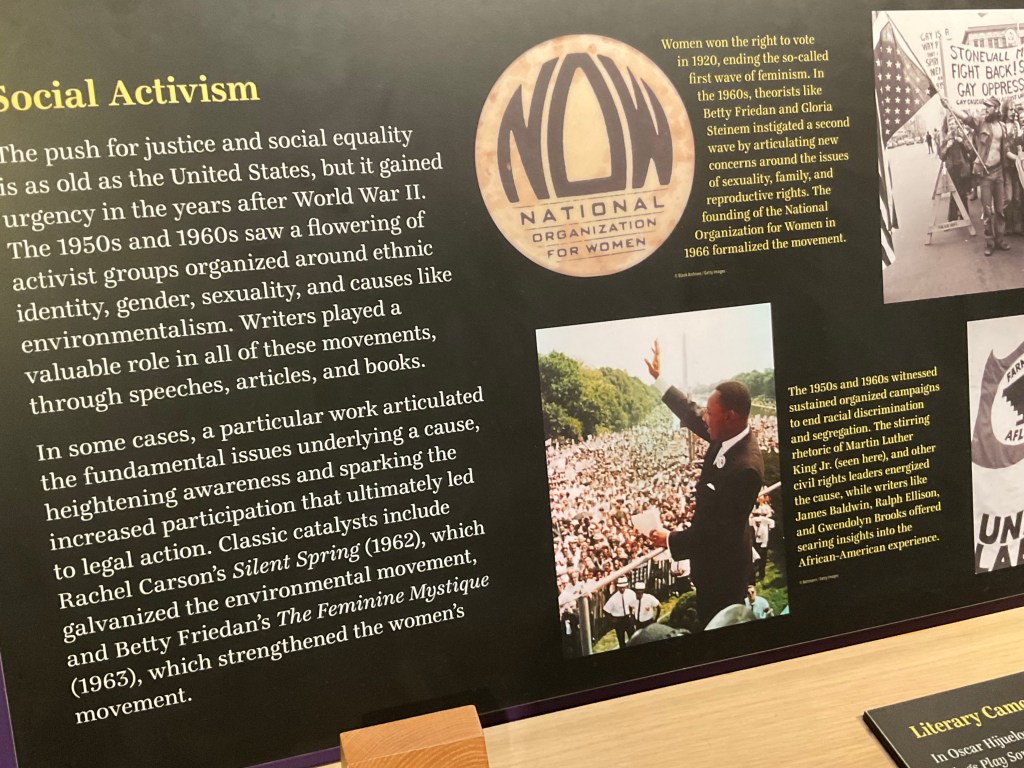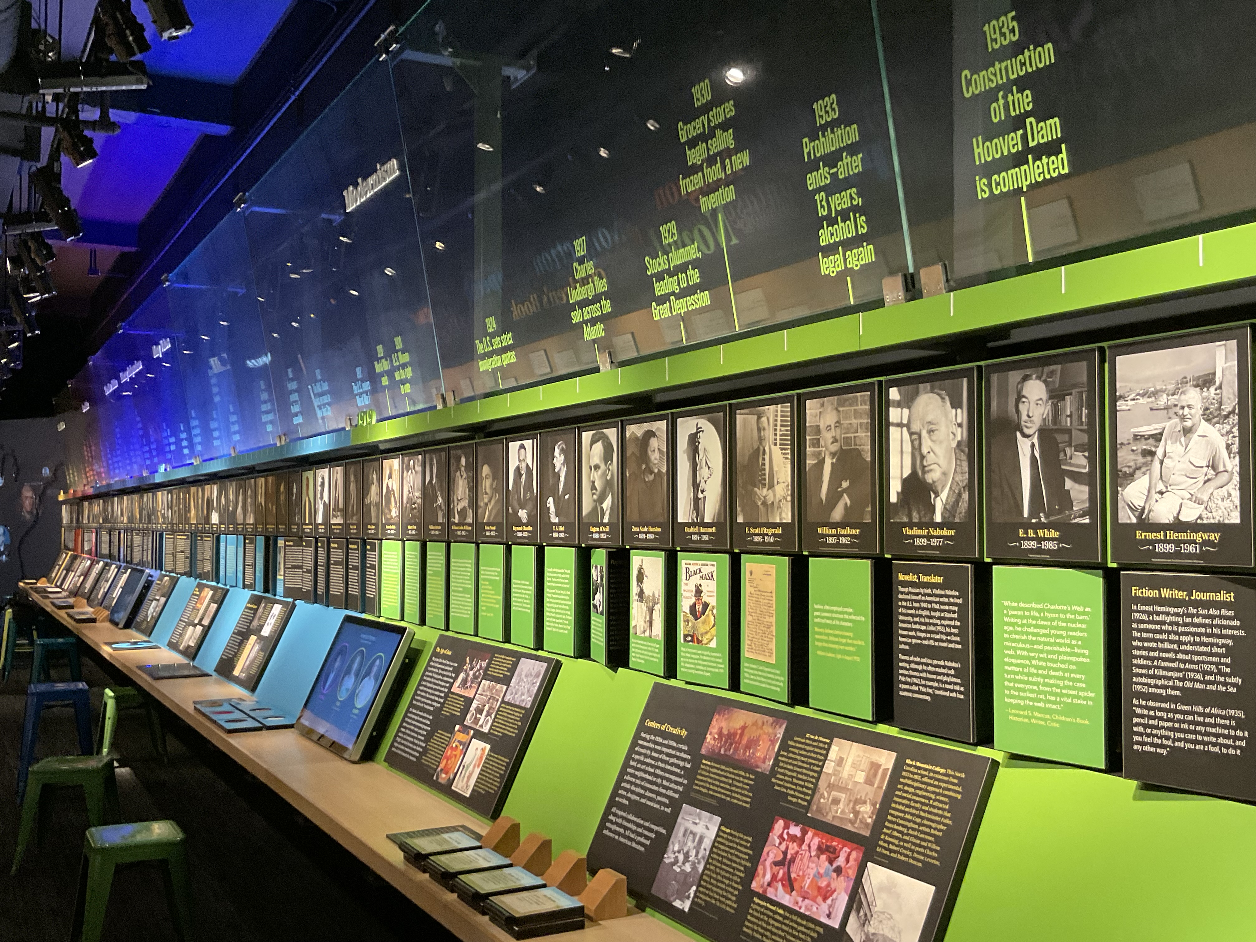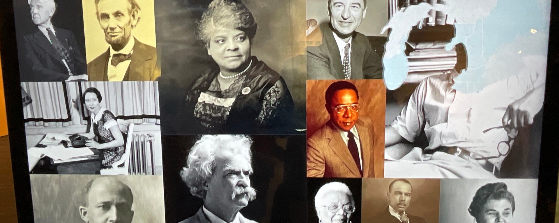 Lá, seja na forma de uma linha do tempo ilustrada com imagens surpreendentes ou em audio-visual, ou ainda em ambientes que lembram uma sala de casa com máquinas antigas de escrever, o visitante se descobre diante de vultos muito conhecidos da literatura e de outrosescritores ainda por descobrir, caso Harriet Beecher Stowe, Paul Laurence Dunbar, William Sidney Porter e Carl Sandburg.
